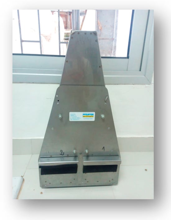 The individual sub-samples were homogenized to obtain a single composite sample per batch and per raw material. These composite samples were then processed using a sample divider (Figure 2) to produce equal fractions, allowing for the collection of a final representative sample intended for analysis.