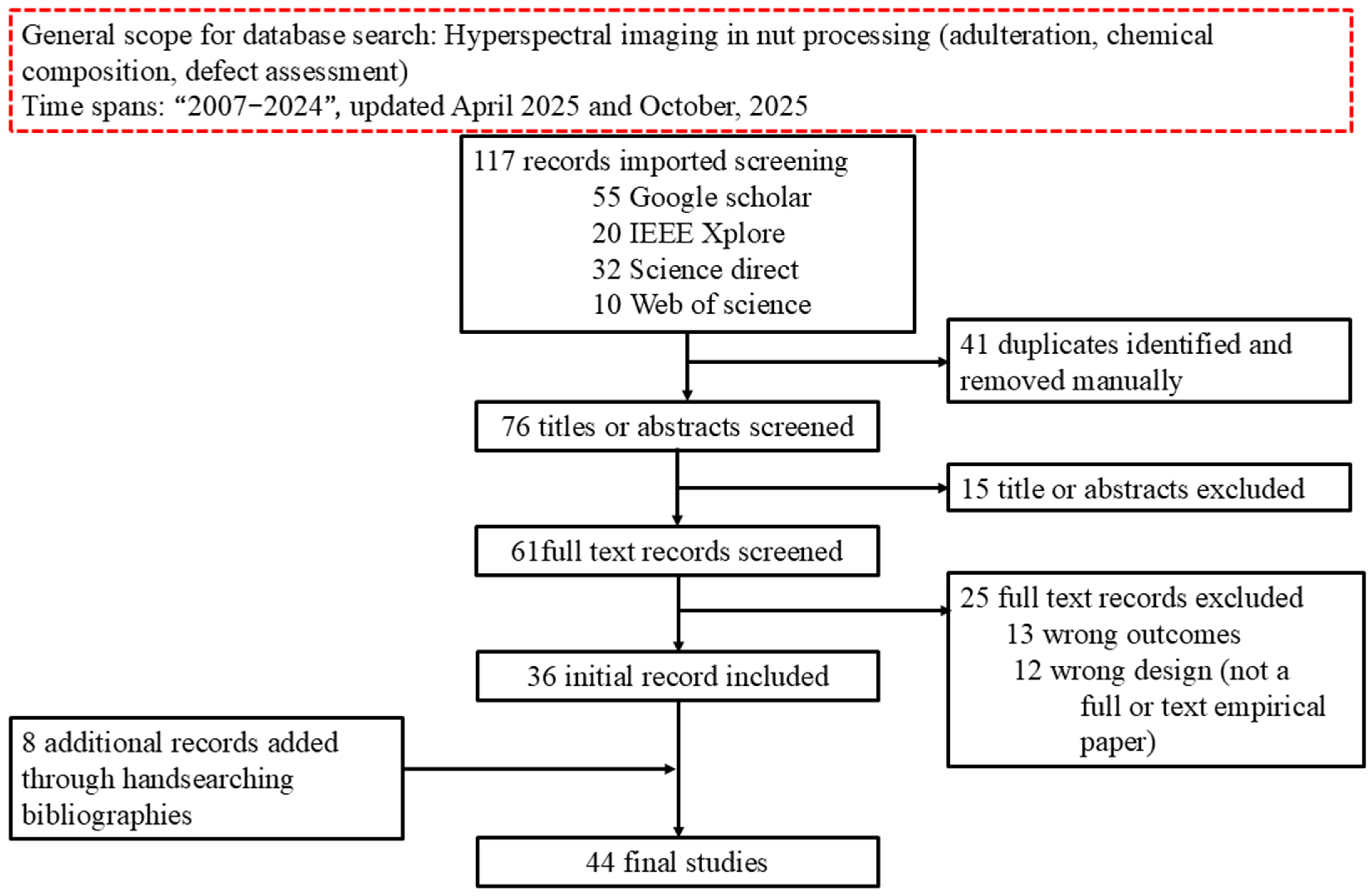 APA StyleOlaniyi, E. O., Kucha, C., & Kong, F. (2025). Integration of Hyperspectral Imaging with Machine Learning for Quality Assessment of Nuts: A Systematic Review. Analytica, 6(4), 51. https://doi.org/10.3390/analytica6040051