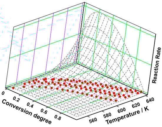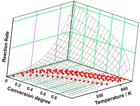 The NPK method, originally presented by Serra, Sempere, and Nomen [28,29,30,31] and subsequently modified by Vlase, Vlase, and Doca [32], is a kinetic method that allows the determination of the kinetic triplet without using a model for k(T) or for f(α). This method is based on the fact that the reaction rate can be expressed as the result of two independent functions; the first one is dependent only on the temperature, and the second one is dependent only on the conversion: