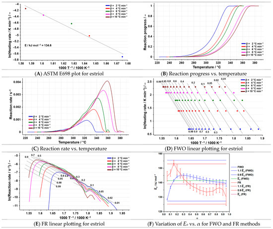 By employing the ASTM E698 kinetic method on estriol (134.6 kJ mol−1), a value for Ea closest to that of the isoconversional methods was obtained (Figure 6A and Table 3).