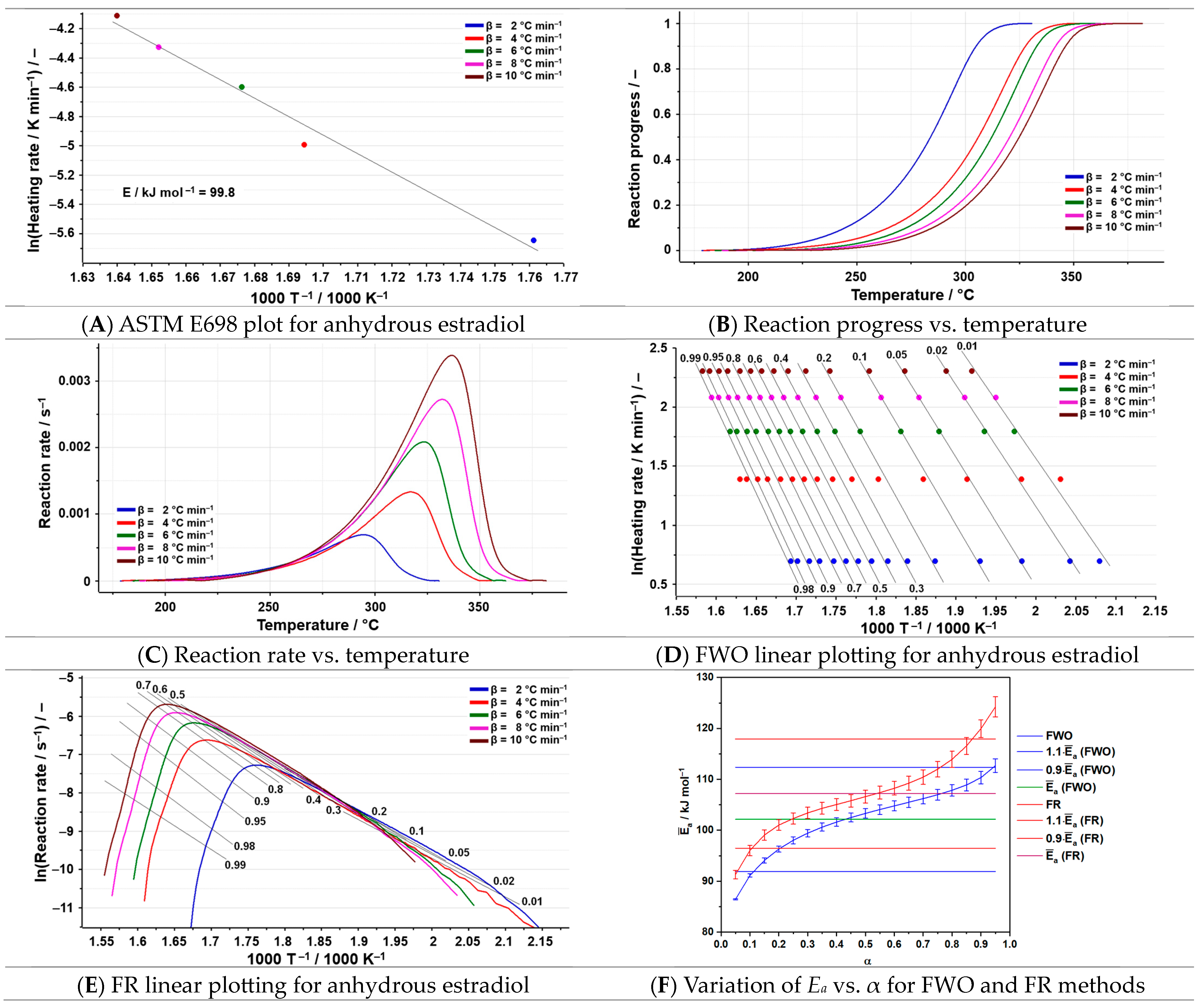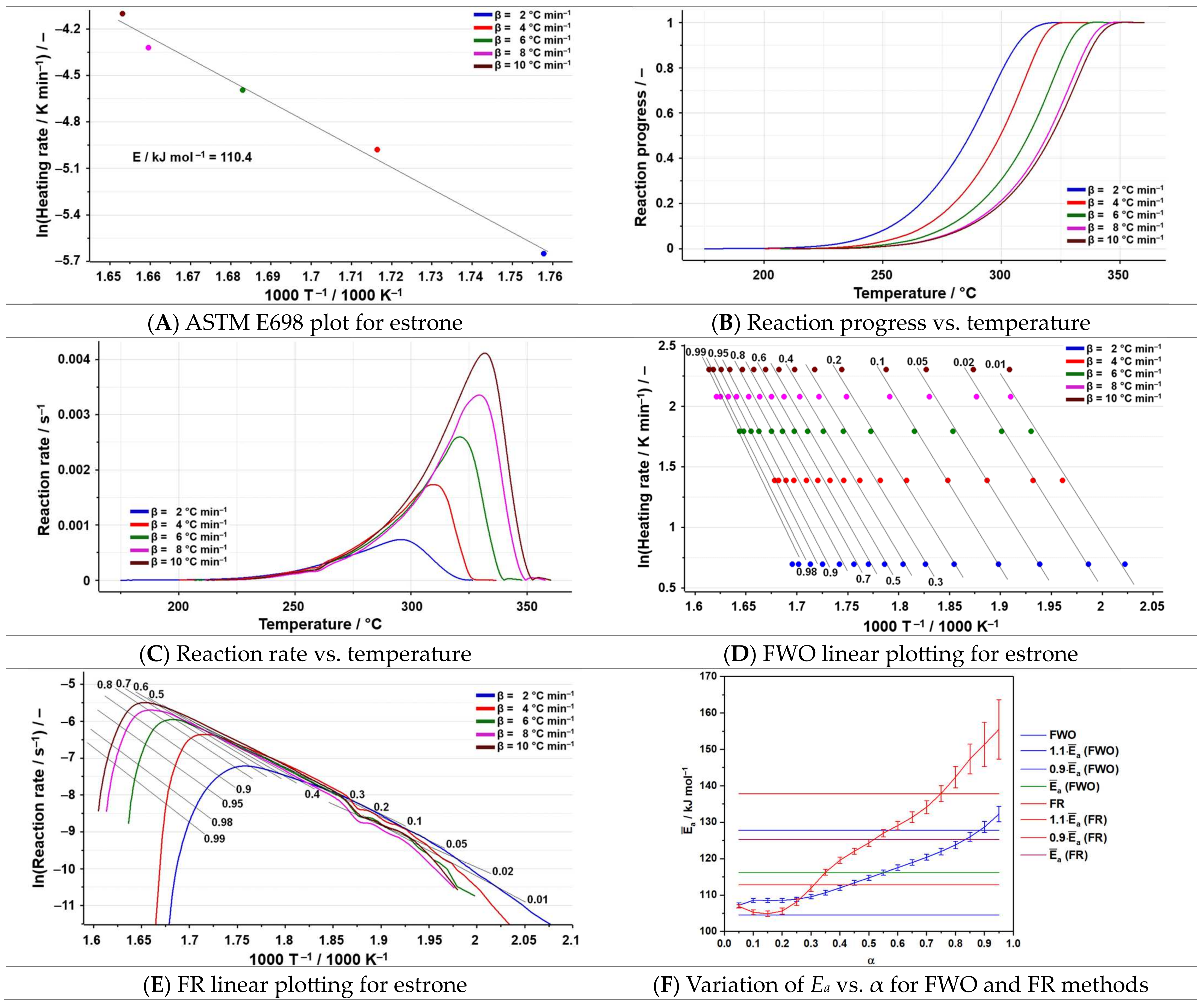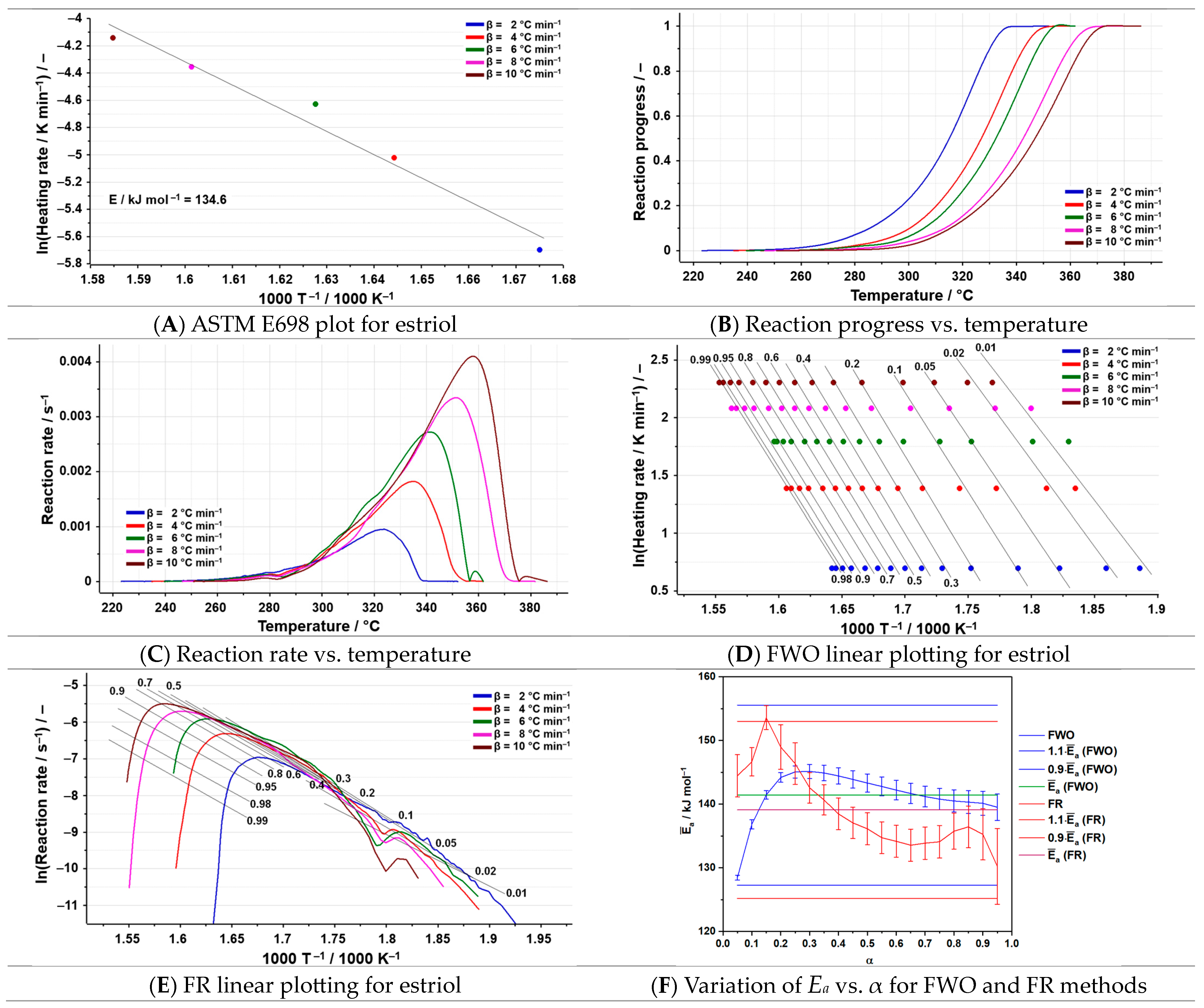 - Ridichie, A.; Bengescu, C.; Ledeţi, A.; Rusu, G.; Bertici, R.; Vlase, T.; Vlase, G.; Peter, F.; Ledeţi, I.; Rădulescu, M. Thermal Stability, Preformulation, and Kinetic Degradation Studies for Gestrinone. J. Therm. Anal. Calorim. 2024, 150, 6785–6799. [Google Scholar] [CrossRef]