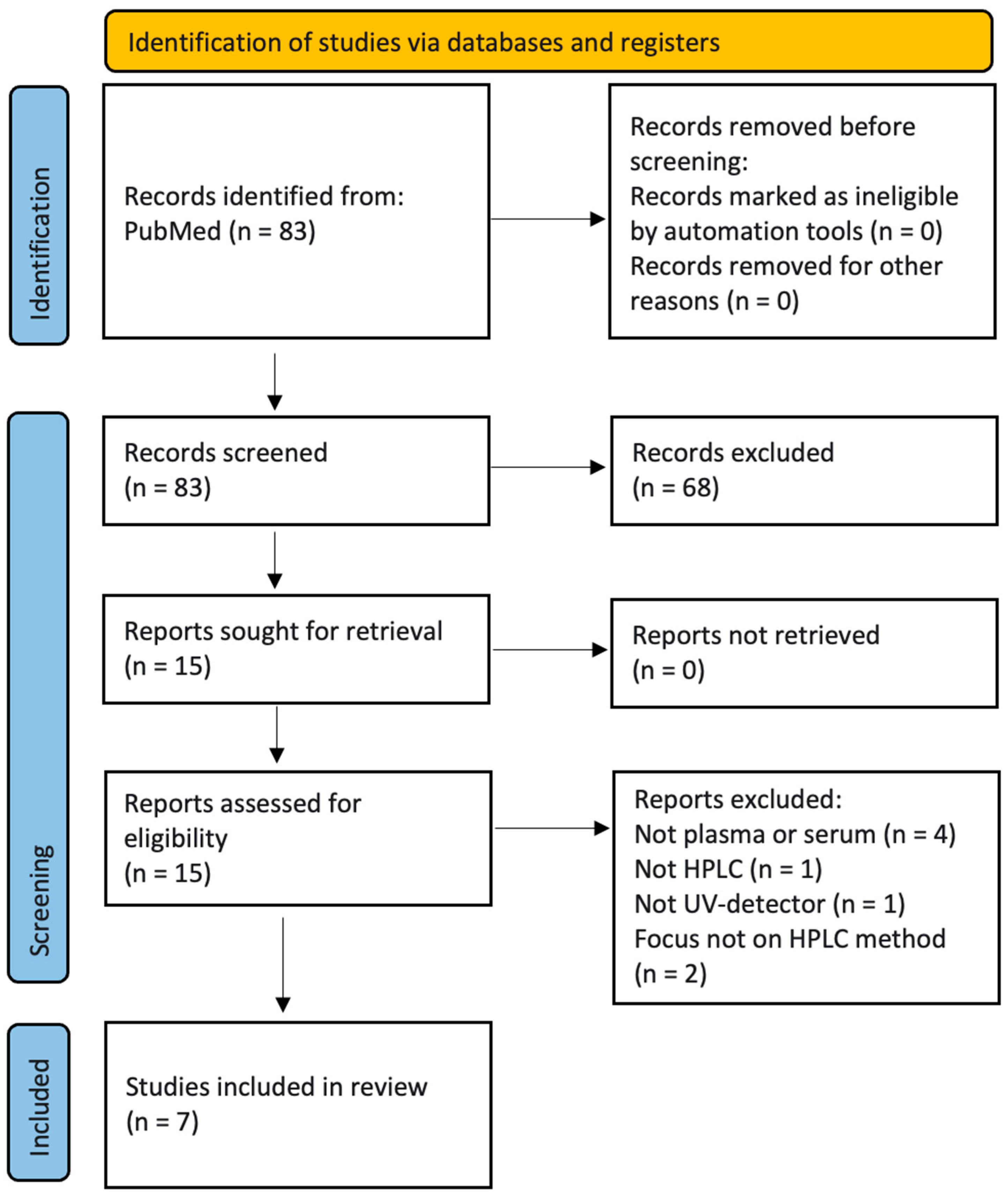 Chicago/Turabian StyleDemtschuk, Miriam, and Priska Heinz. 2026. "Systematic Review of Different Methods for the Quantification of Vitamin C in Human Plasma Samples by HPLC and UV Detector" Analytica 7, no. 1: 2. https://doi.org/10.3390/analytica7010002