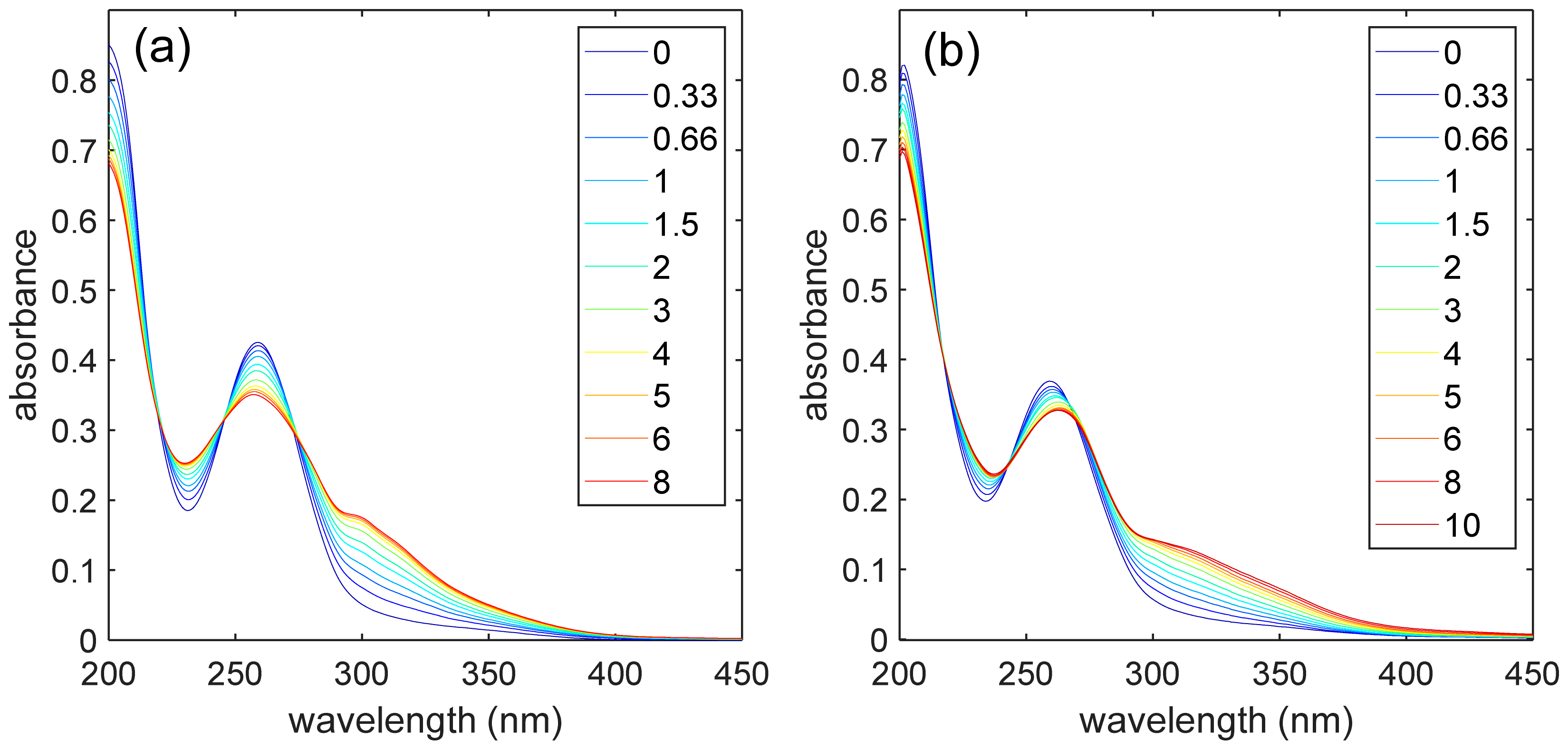 The photolysis kinetics was obtained by fitting the absorbance spectra with the sum of the first and the last measured absorbance spectra in the time series according to Equation (17) (