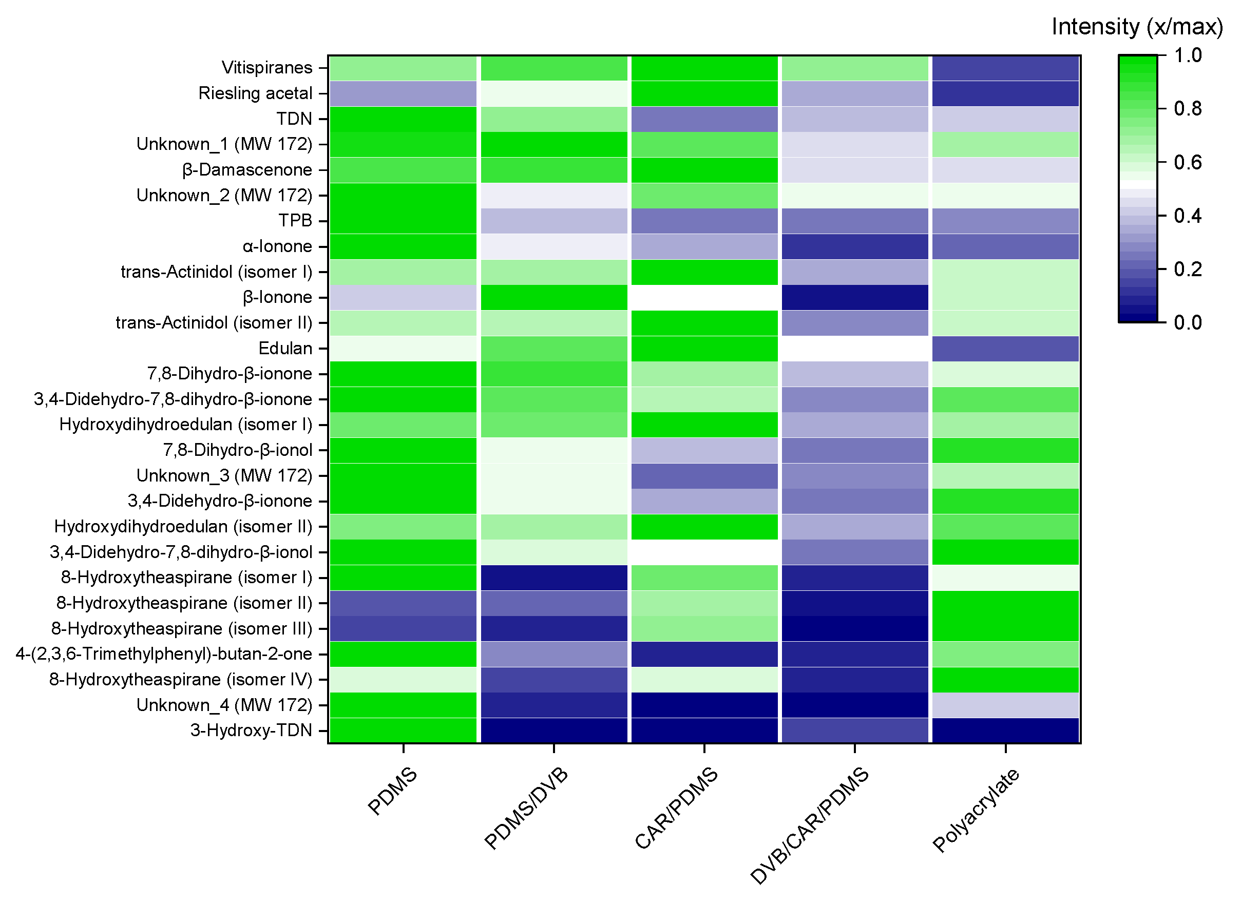 | Vitispiranes low | 3.30–330 | 1.10 | 3.30 | 0.9943 | d5-vitispiranes |