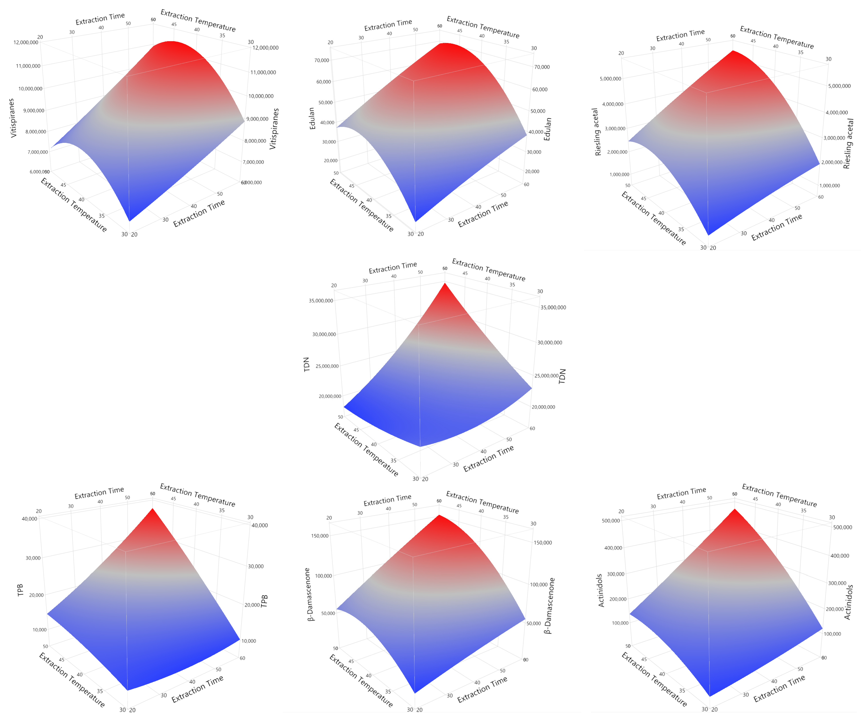 | Extraction temperature (Tex) | 30 °C | 40 °C | 50 °C |