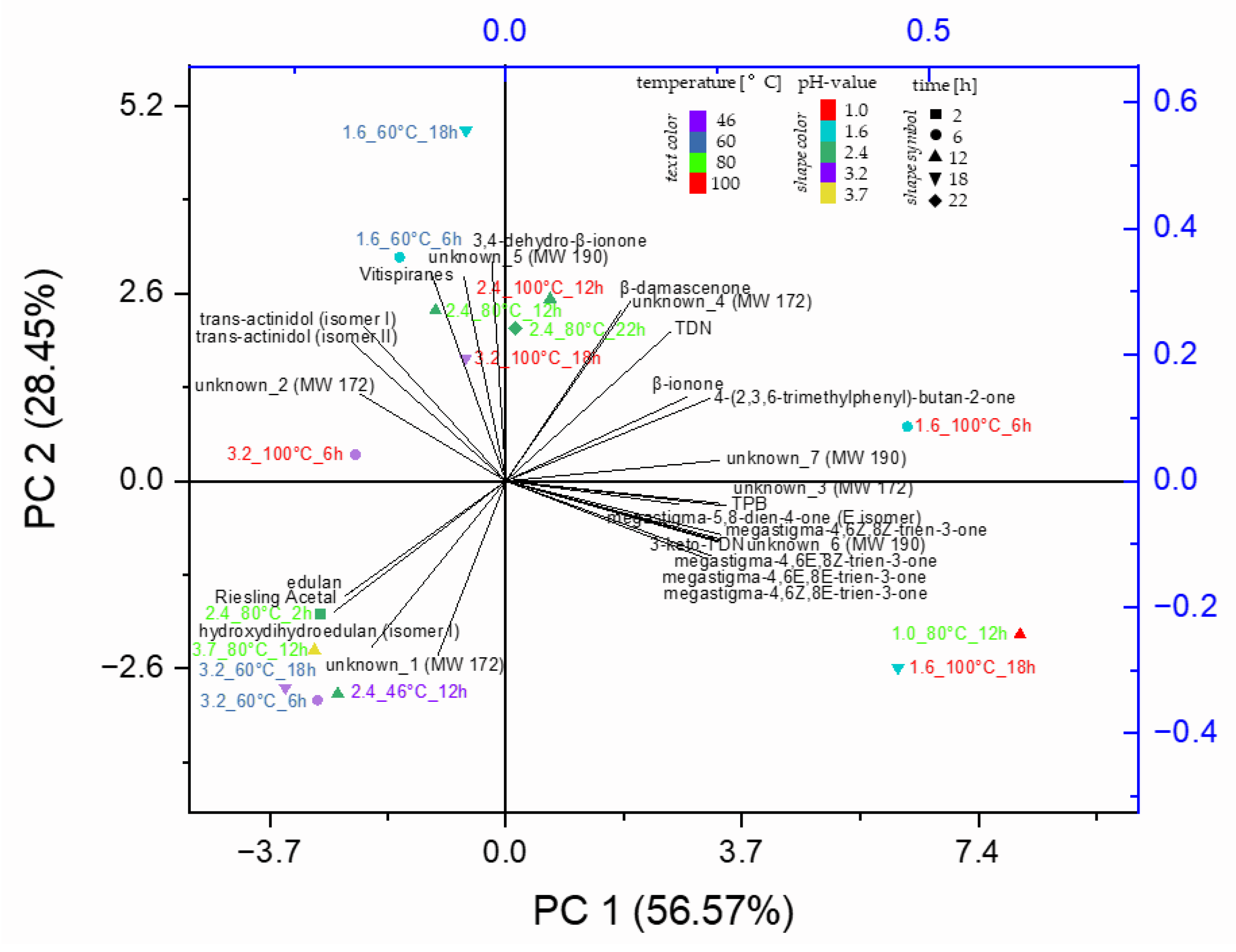 3.4. Investigation of Norisoprenoid Profiles Under Different Hydrolysis Conditions in Riesling Wine