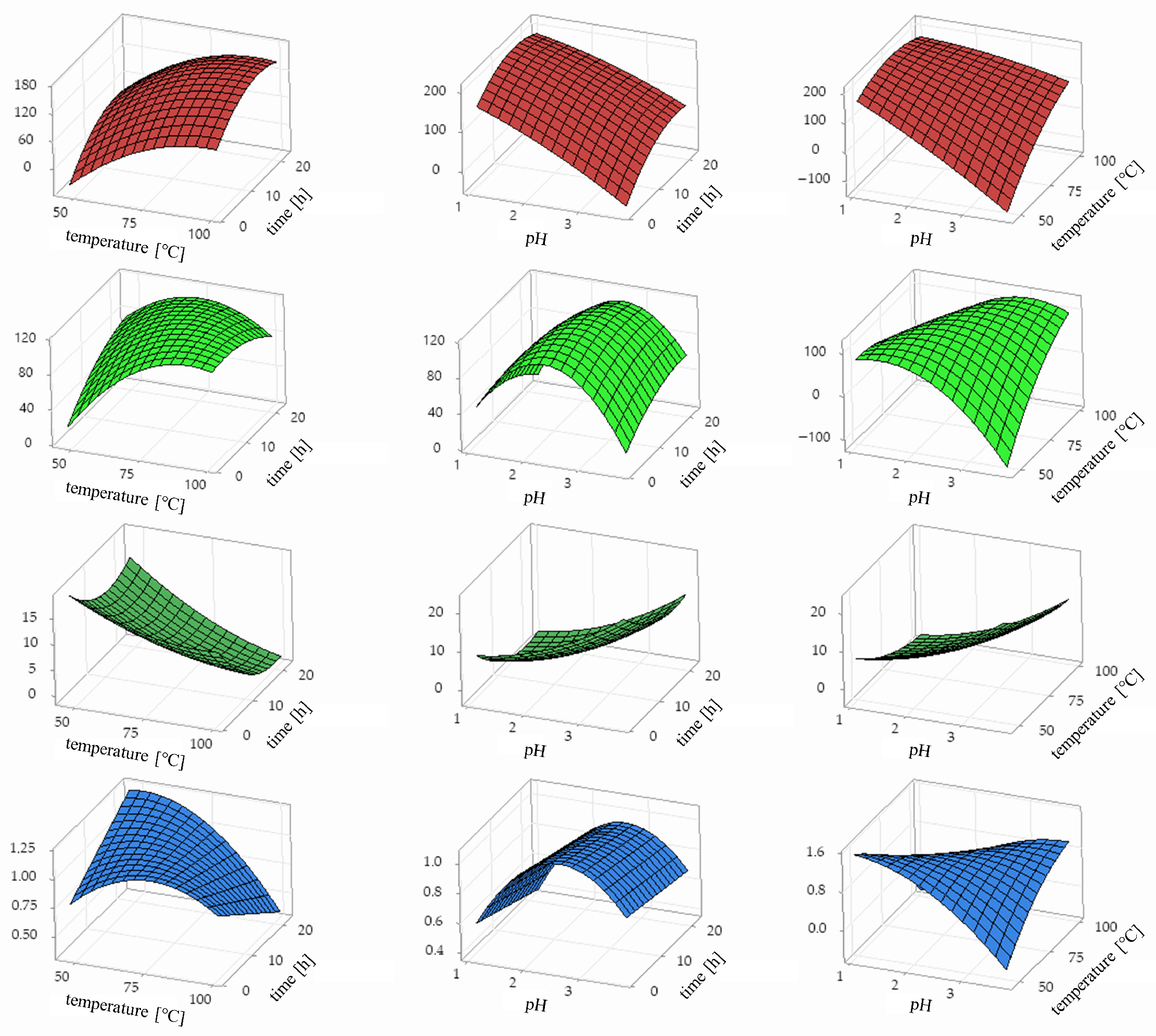 3.4.2. Results of the DoE Investigation of Acid Hydrolysis