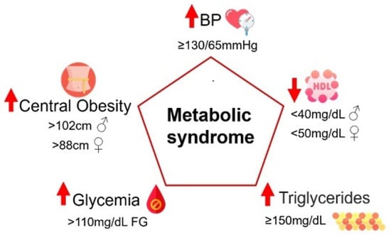 - Alves, R.; Santos, A.J.; Kislaya, I.; Nunes, B.; Freire, A.C. Metabolic Syndrome in Portugal: Prevalence and Associated Factors. Acta Medica Port. 2022, 35, 633–643. [Google Scholar] [CrossRef]