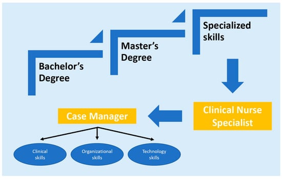 Unfortunately, this role is still not widespread, although it is rapidly developing [32], particularly in specialized fields such as diabetology and the chronic diseases associated with it. Figure 2 outlines the possible university pathway to acquire the competencies of a nursing case manager.