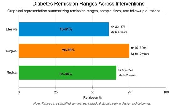 - Taheri, S. Type 2 Diabetes Remission: A New Mission in Diabetes Care. Diabetes Care 2023, 47, 47–49. [Google Scholar] [CrossRef] [PubMed]