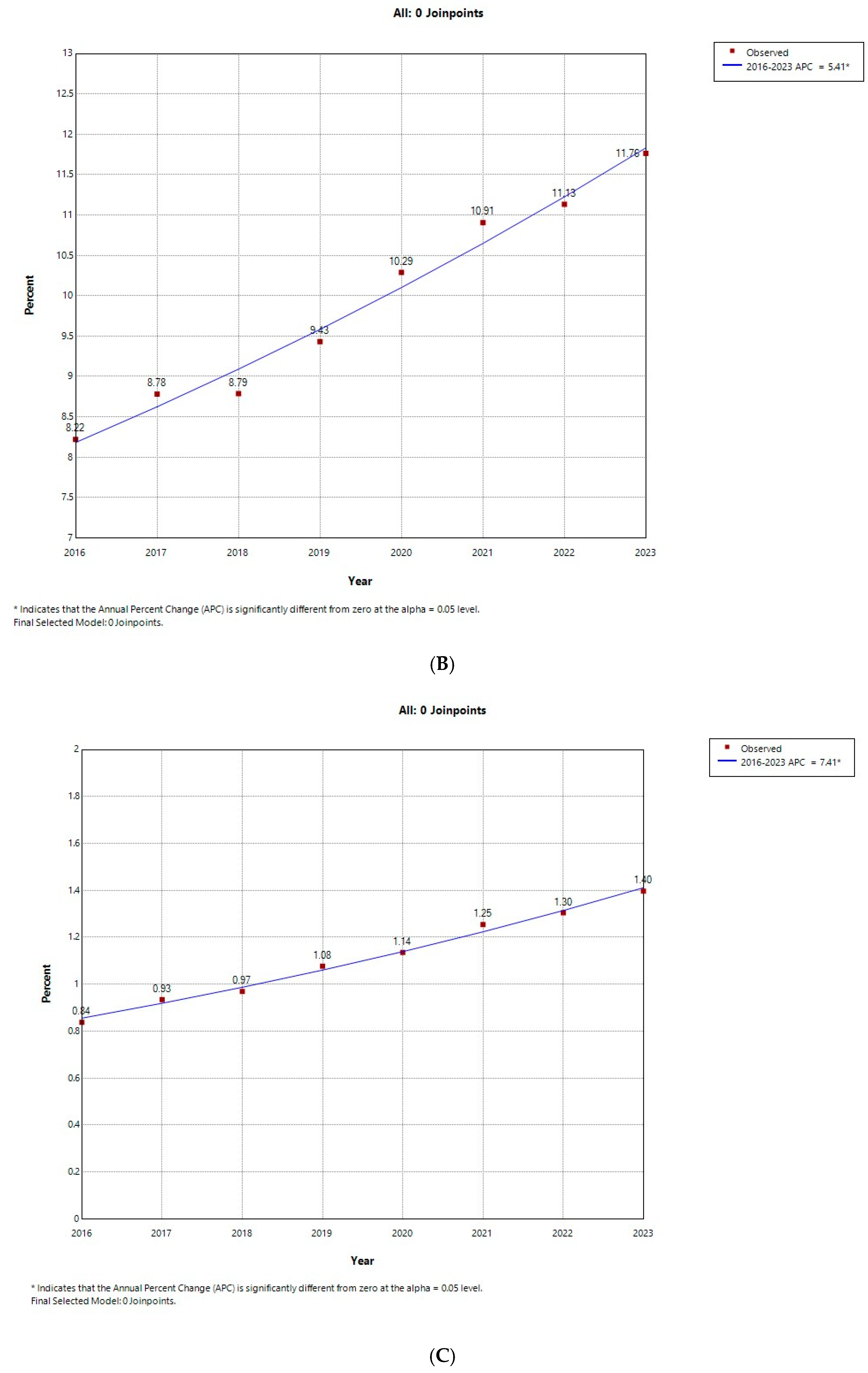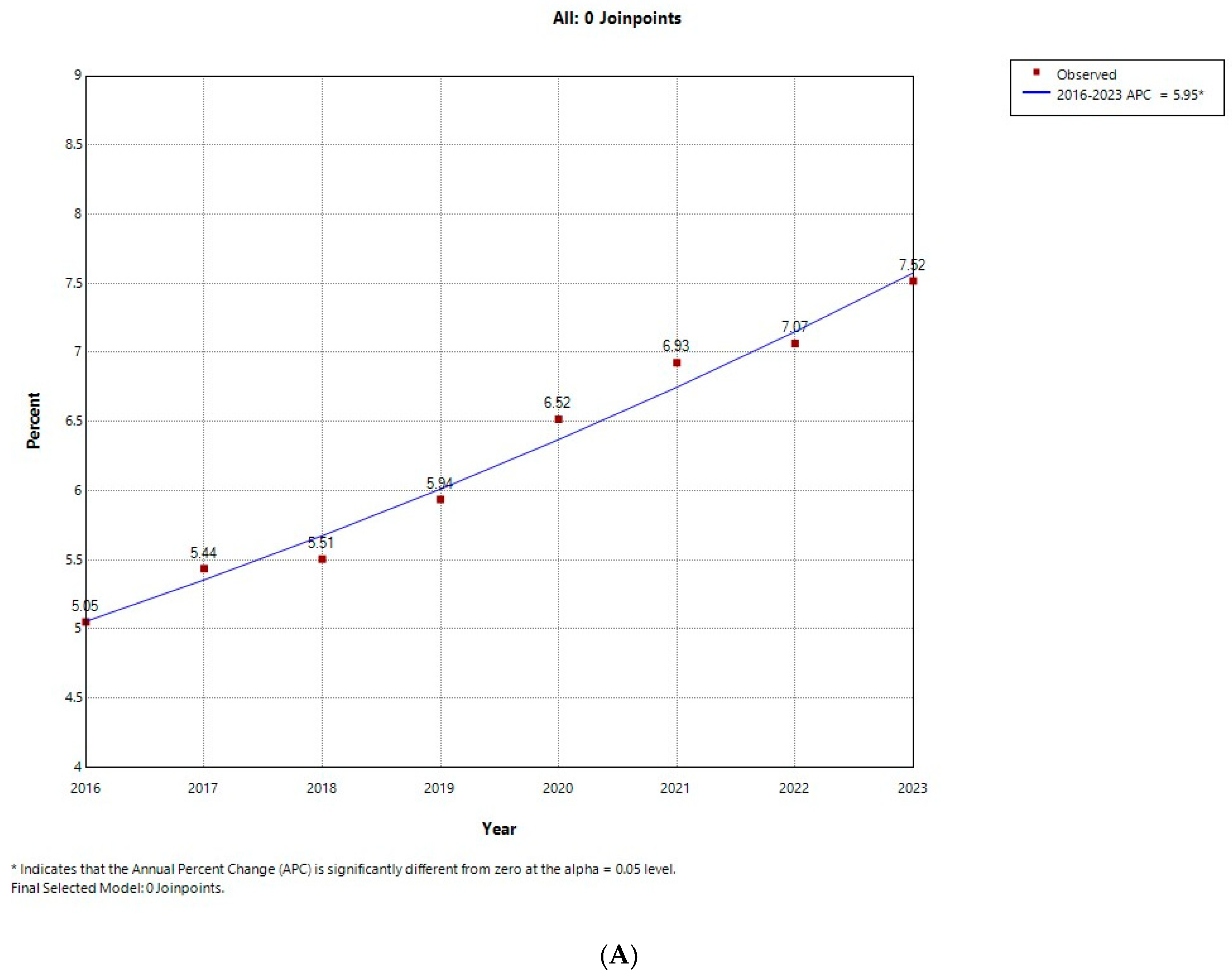 - Joinpoint Regression Program, Version 5.4.0.0-April 2025; Statistical Methodology and Applications Branch, Surveillance Research Program, National Cancer Institute: Rockville, MD, USA, 2025.