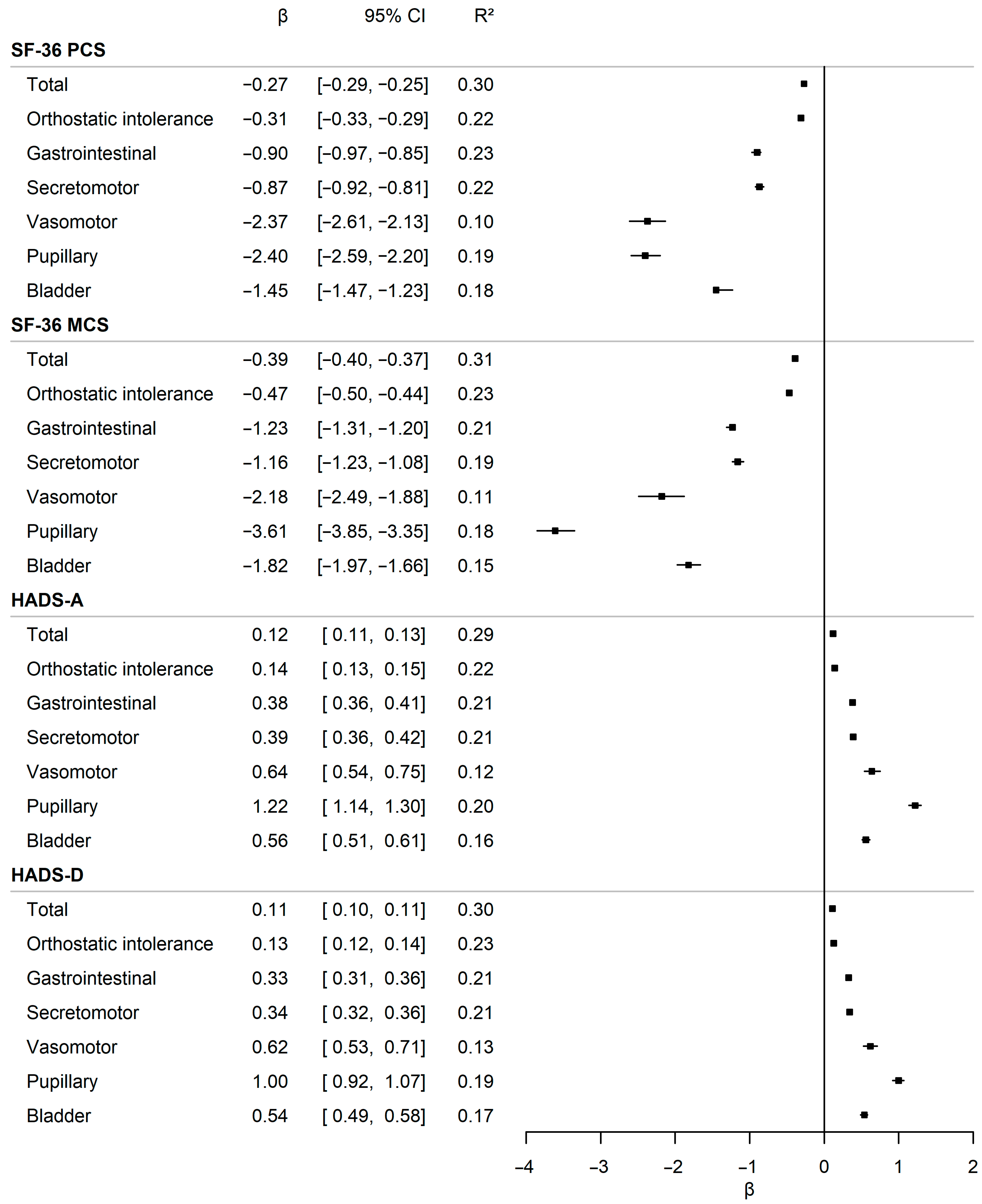 3.4. Impact of Autonomic Symptom Burden on General and Psychological Well-Being