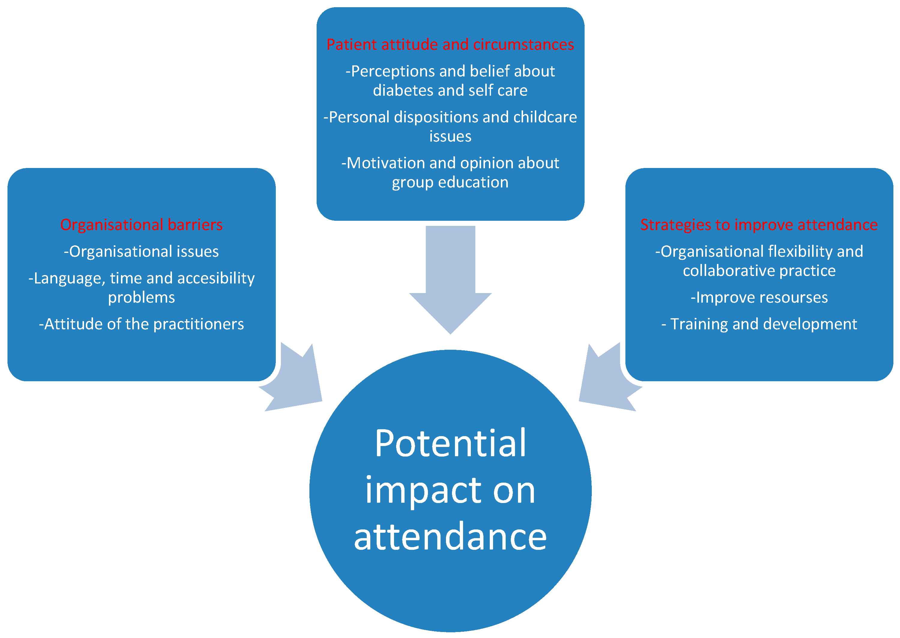 - Horigan, G.; Davies, M.; Findlay-White, F.; Chaney, D.; Coates, V. Reasons why patients referred to diabetes education programmes choose not to attend: A systematic review. Diabet. Med. 2017, 34, 14–26. [Google Scholar] [CrossRef] [PubMed]