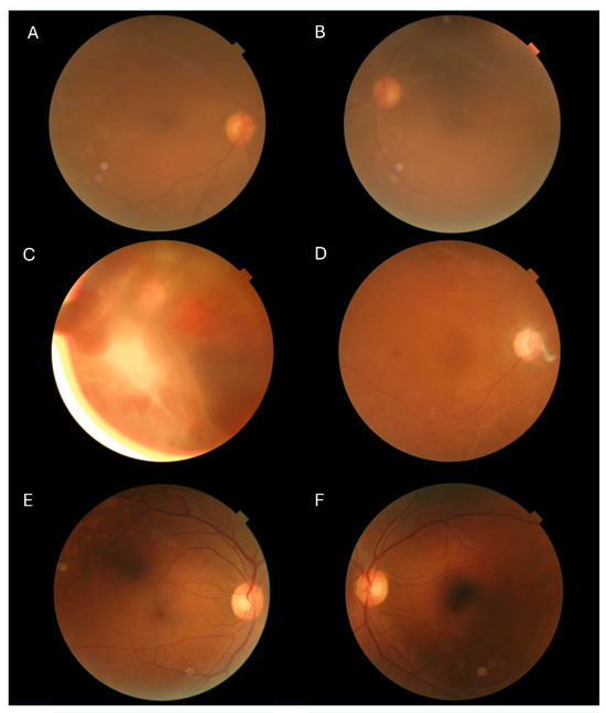 A sample of study images showing gradability of images by the ophthalmologists and deep learning systems. (A,B): Two retinal photographs ungradable by ophthalmologists and all DLSs. (C): Photograph ungradable by Thirona RetCADTM and EyRIS SELENA+, graded as referable DR by ophthalmologists and Google ARDA. (D): Photograph ungradable by EyRIS SELENA+, but graded as referable DR by ophthalmologists, Google ARDA, and Thirona RetCADTM. (E,F): Two photographs ungradable by EyRIS SELENA+ and both graded as non-referable DR by ophthalmologists, Google ARDA, and Thirona RetCADTM.