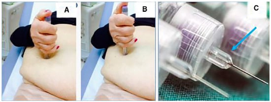 Combined palpation technique by expert and specifically trained HCPs grants good chances of success when based on (i) light and superficial firstly, then tough, deep, accurate palpation of injection sites, (ii) repeated site handling, (iii) careful site visual inspection using tangential and frontal light sources, (iv) pinching technique utilization (Figure 12 and Figure 13) [56,57,62].