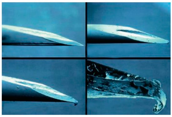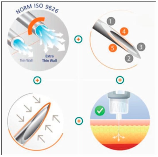 No less important is the laser-assisted geometry of the needle tip with 3 or 5 cuts and without burrs along the incision line of each cut, which guarantees easier penetration and extraction from the tissues and, therefore, better injection comfort (Figure 9) [40,41,42,43,44].