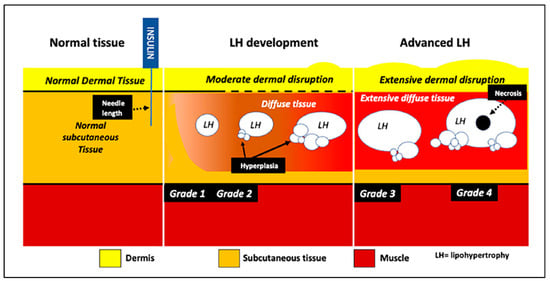 LHs are due to failure to rotate the injection sites, reuse of the same needle several times, use of ice-cold insulin, and insulin’s anabolic properties [9,54].