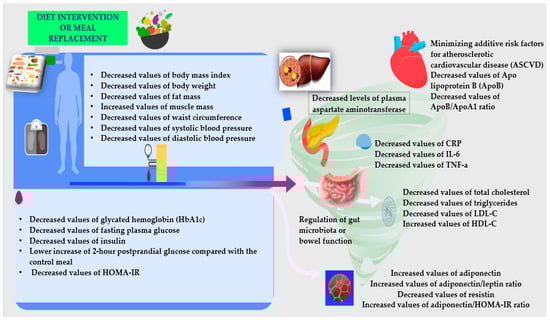 Diabetes is a cardiometabolic disorder in which both microvascular and macrovascular complications contribute to morbidity and mortality [83]. Figure 2 shows how nutritional interventions can minimize these complications with certain impacts on biomarkers.