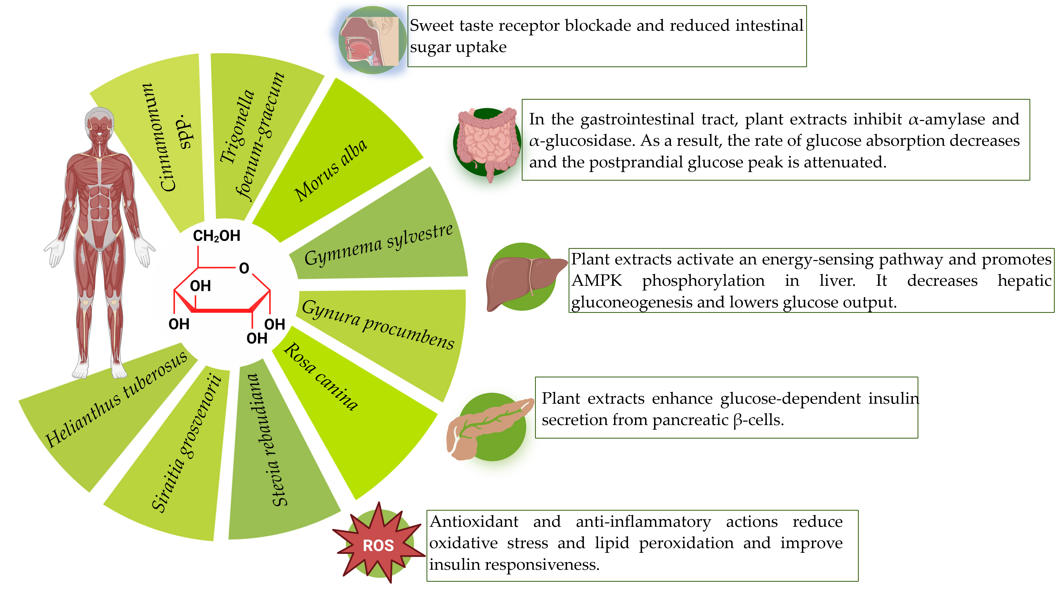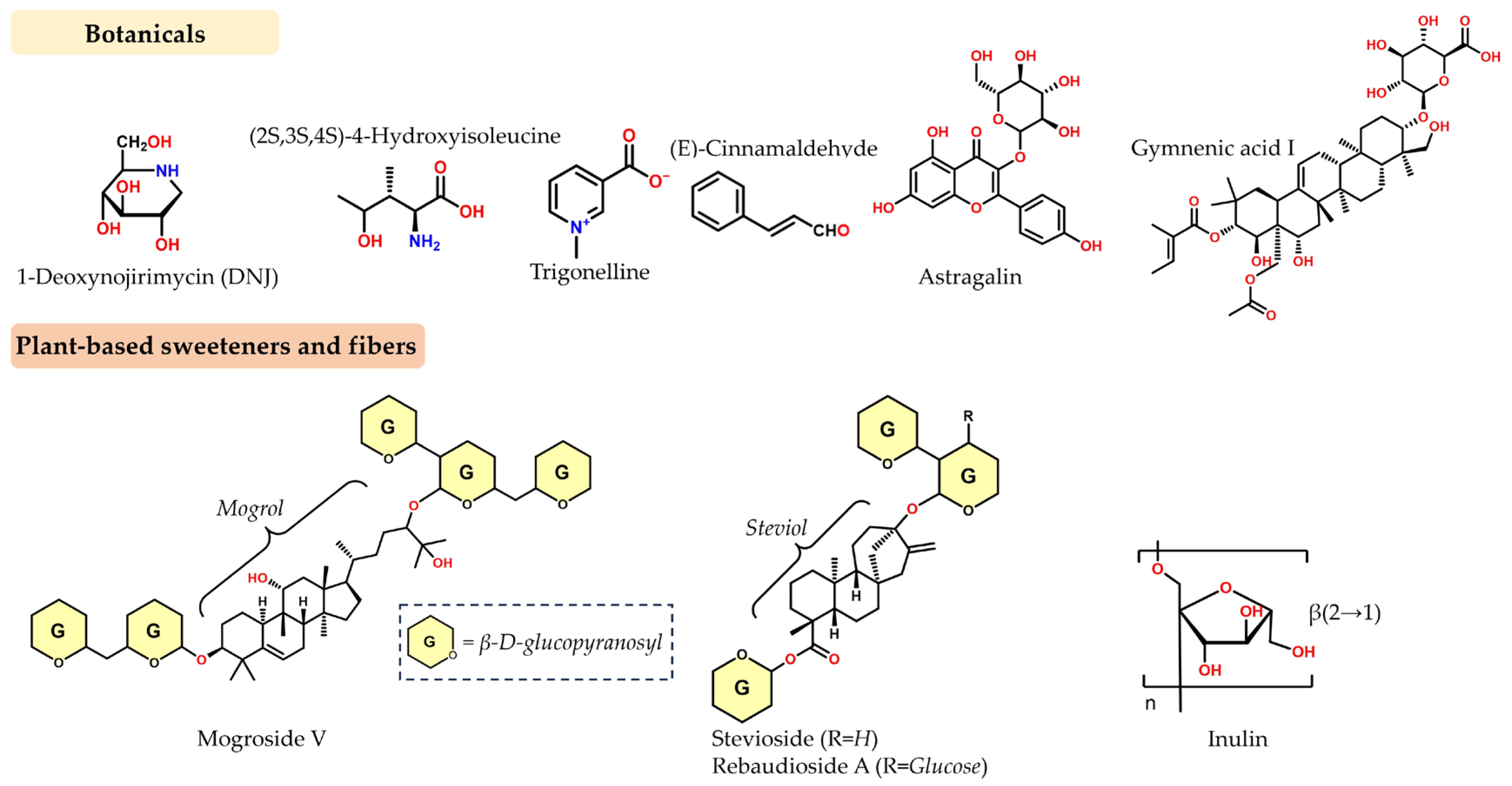 - Examined plant-derived glucose-lowering botanicals or plant-based sugar substitutes/sweeteners relevant to glycemic management;