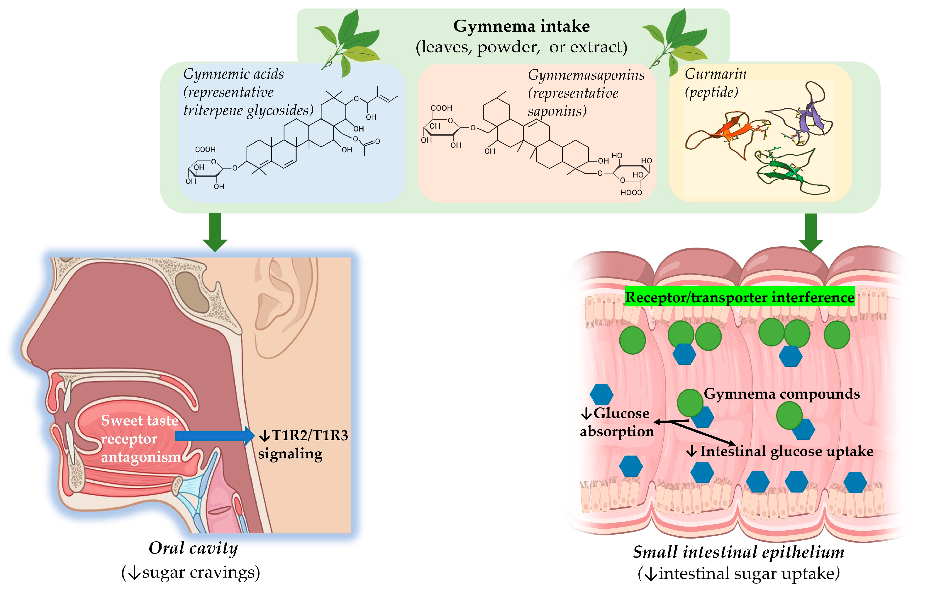 - Devangan, S.; Varghese, B.; Johny, E.; Gurram, S.; Adela, R. The Effect of Gymnema sylvestre Supplementation on Glycemic Control in Type 2 Diabetes Patients: A Systematic Review and Meta-analysis. Phytother. Res. 2021, 35, 6802–6812. [Google Scholar] [CrossRef]
