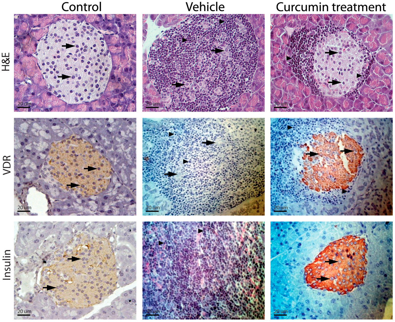 3.4. Vitamin D Receptor and Insulin Expression in Pancreatic Islets Characterize Curcumin Treatment