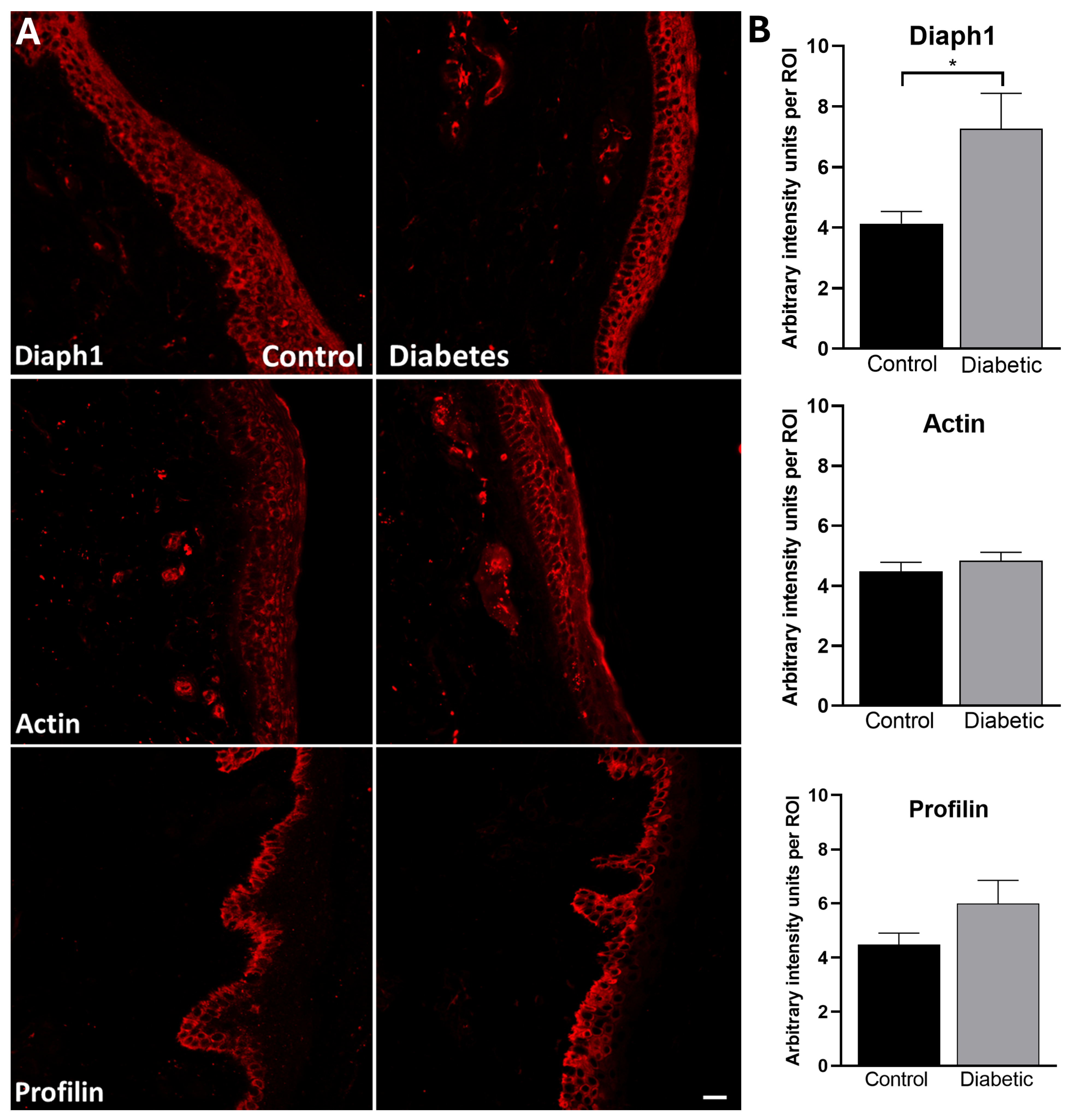 Long-Term Hyperglycemia Affects the Expression of Diaph1 and Its Cytoskeleton Ligands in the Epidermis of Diabetic Patients—A Quantitative Study