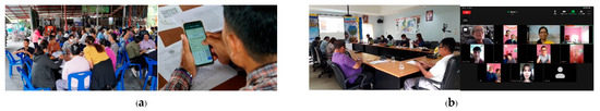 Farmers’ engagement in training workshop and data collection for (a) on-site, and (b) online.