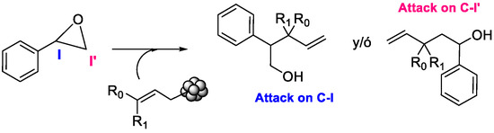 Epoxides are extremely interesting electrophiles in terms of their properties and reactivity. They are part of many natural products as well as numerous compounds of biological importance. In organic synthesis, organometallic compounds provide a source of nucleophilic carbon centers that can react with electrophiles to form new carbon–carbon bonds. In particular, allyl–indium species react with various electrophiles, such as carbonyl compounds, to generate homoallylic alcohols [1]. Epoxides present great reactivity due to the intrinsic tension of the cyclic system and can react with organometallic compounds, giving rise to the formation of ring-opening products to give molecules that are larger and more complex. For this reason, the general aspects of epoxide synthesis and ring-opening reactions have been extensively reviewed [2].