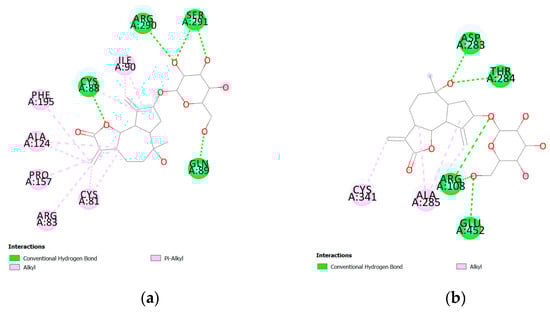 The proteins from protein-ligand complexes were an electrophilic carbon of the Ixerin D located within 0.4 nm from the sulfur atom of a cysteine residue and their binding energies.