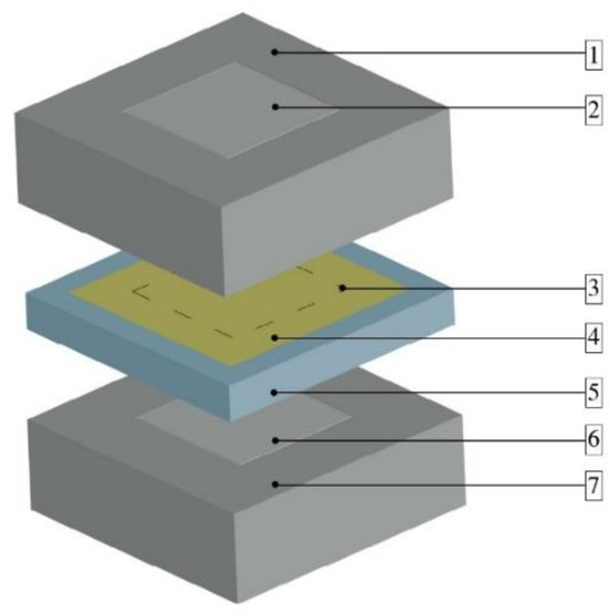 - The thermal resistance, determined using the appropriate calculation formula tailored for a steady-state heat transfer regime:where —thermal resistance of the paint layers; —thermal resistance of the gypsum board specimen covered on both sides with the test paint; —thermal resistance of the gypsum board specimen;