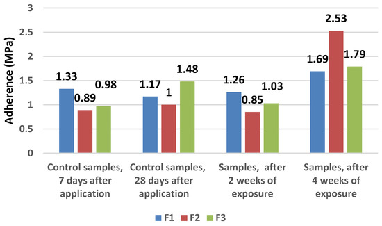 3.2.1. Analysis of the Durability for Coatings Applied to a Cement Mortar Base