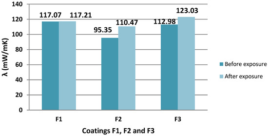 - The most impressive thermal conductivity readings, both initially and at the conclusion of the exposure interval, were attributed to coating F2. Its composition integrated the acrylic binder and adhesive, complemented solely by additives derived from both vegetable and animal sources.
