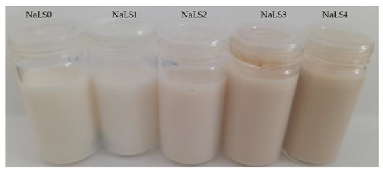 Emulsions containing lower concentrations of NaLS were proven to be more stable, as evidenced by the fact that there were no notable changes in the tested parameters or in their visual appearance. All other emulsions had different values for droplet size and polydispersity index, indicating that they are less stable, being prone to phase separation in time. As seen in Figure 3, emulsions with high concentrations of NaLS are destabilized since the creaming phenomenon is observed.
