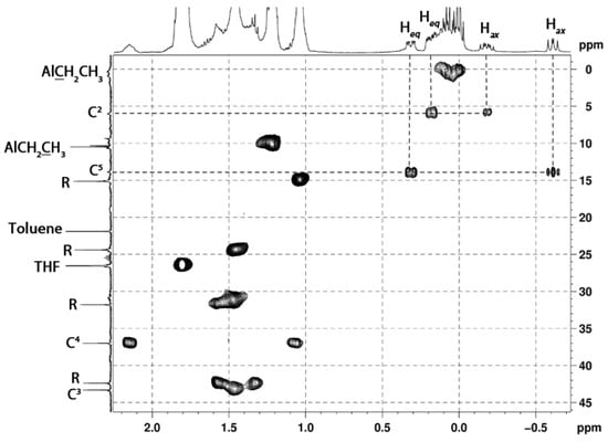 Fragment of the HSQC spectrum of 1-ethyl-3-butylalumolane 4 in THF-d8.
