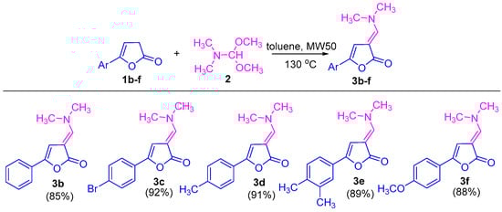 2.2. Structure of 3-Dimethylaminomethylene Derivatives of Furan-2(3H)-Ones 3a–f
