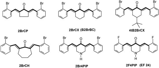 Structures of symmetrical MACs containing a 2-bromobenzylidene moiety and EF24.