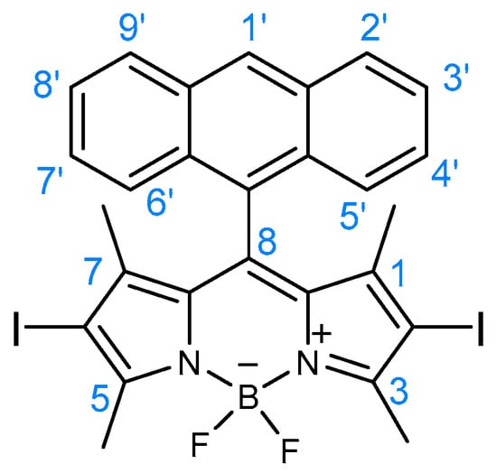 As an extension of the work developed in our research group [12,13], we report the design and evaluation of BODIPY derivatives functionalized with an anthracene moiety at meso and an iodine or formyl group at the 2,6-positions of the core. The photophysical characterization of the derivatives and in vitro PDT studies in cancer cells (the 4T1 cell line) were performed, to determine their potential as PDT photosensitizers.