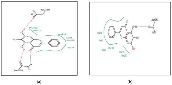 The FlexX v 2.1.3 program was used to load the potential binding sites between the various ligands and the target protein. Prediction of protein–ligand interactions is performed using FlexX v 2.1.3 docking software. The results of docking were then compared with the docked result of reference ligand obtained from the corresponding PDB ID. The docking scores, 2D and 3D pose views, as well as the binding affinities of the selected natural compounds, were generated for further investigation.