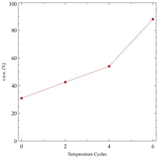 Starting from 30% c.e.e., after six temperature cycles, the c.e.e. reached 88% (Figure 2). Successful deracemization could be performed using Amberlyst A26 as the sole racemizing agent.