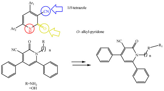 The 2-pyridones have at least three active sites based on the presence of the non-substituted “NH”, “C=O”, and “CN” groups. The regio-selectivity of N- versus O-alkylation is still debated, it depends on various factors, including the catalyst type, the structure of alkyl halides, the substituents on the 2-pyridone ring, solvents, and temperature. However, developing new approaches for the selective synthesis of substituted N-alkyl 2-pyridones still needs to be explored and remains an interesting research topic [5,6,7].