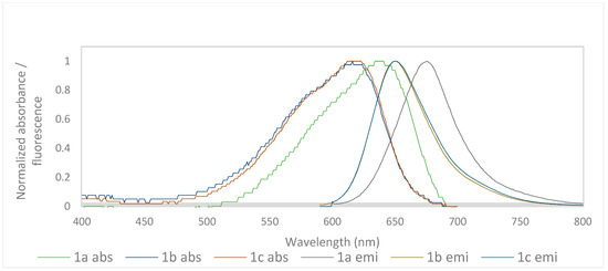 Normalized absorbance and emission spectra of compounds 1a–c in ethanol.