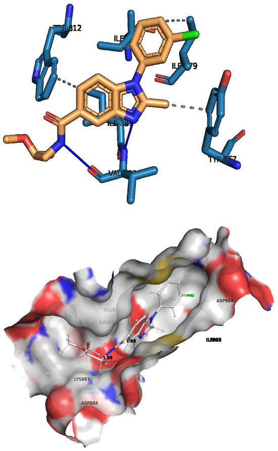 max = 2.09), further supported the molecule’s electronic competence. Molecular docking against