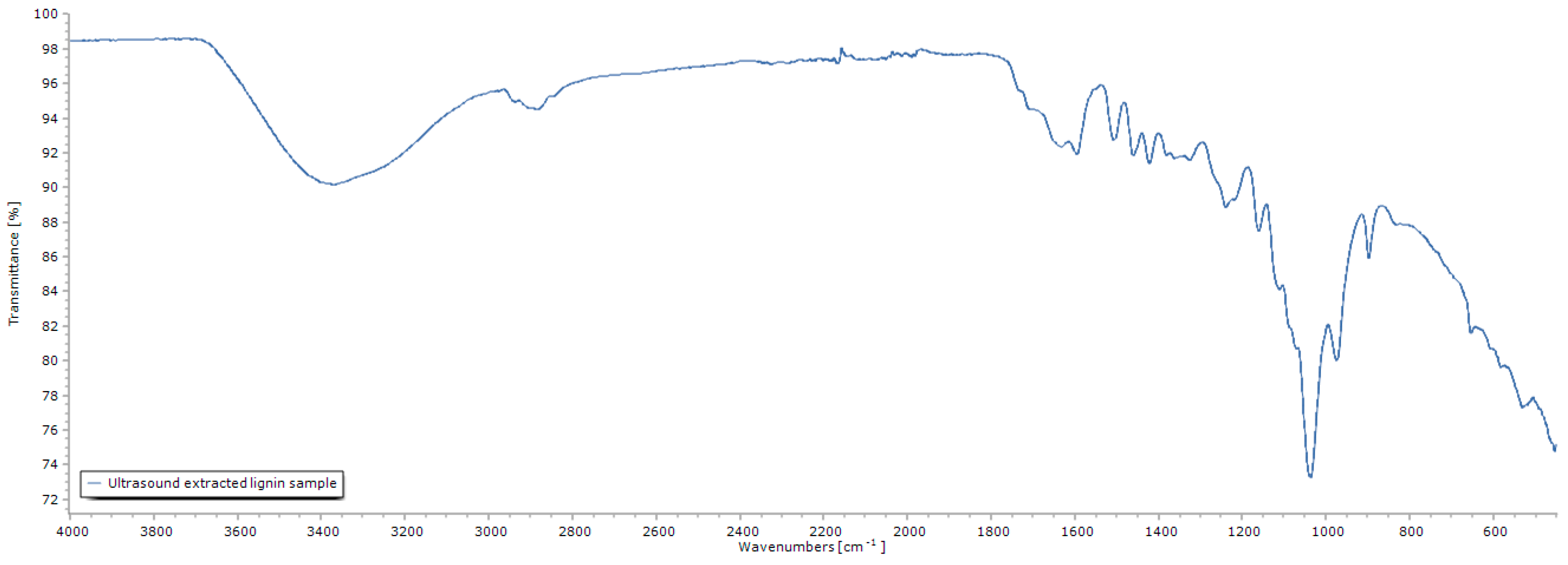 2.4. Optimization of Ultrasound Reaction Conditions for Lignin Extraction