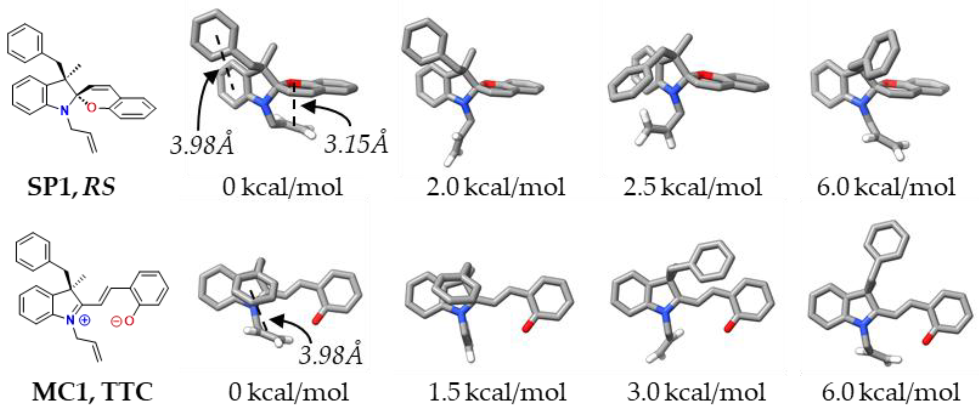 - Kortekaas, L.; Browne, W.R. The Evolution of Spiropyran: Fundamentals and Progress of an Extraordinarily Versatile Photochrome. Chem. Soc. Rev. 2019, 48, 3406–3424. [Google Scholar] [CrossRef]