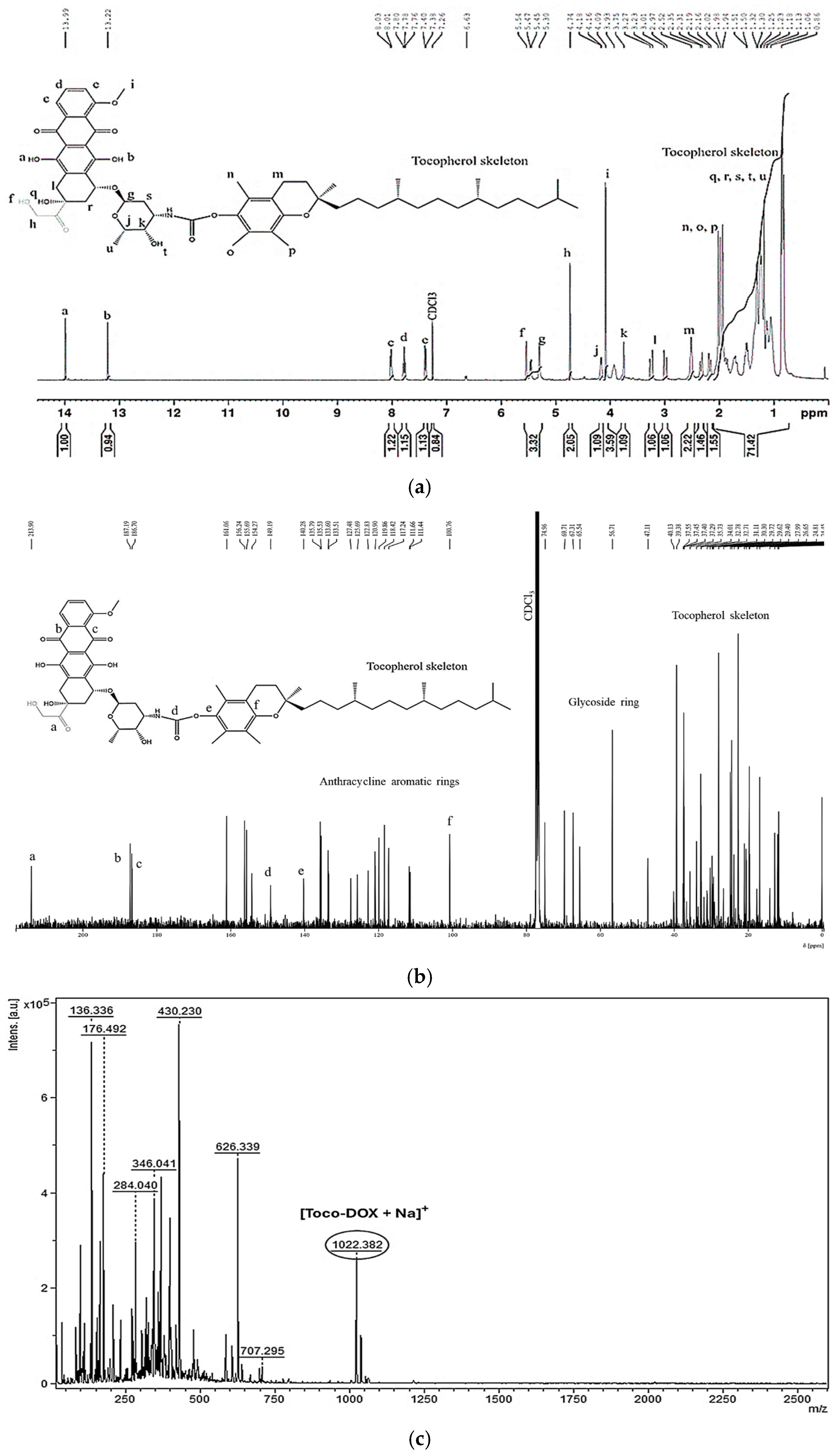 3.3. Theoretical Analysis and Calculation of the Synthesized Toco–Dox Conjugate