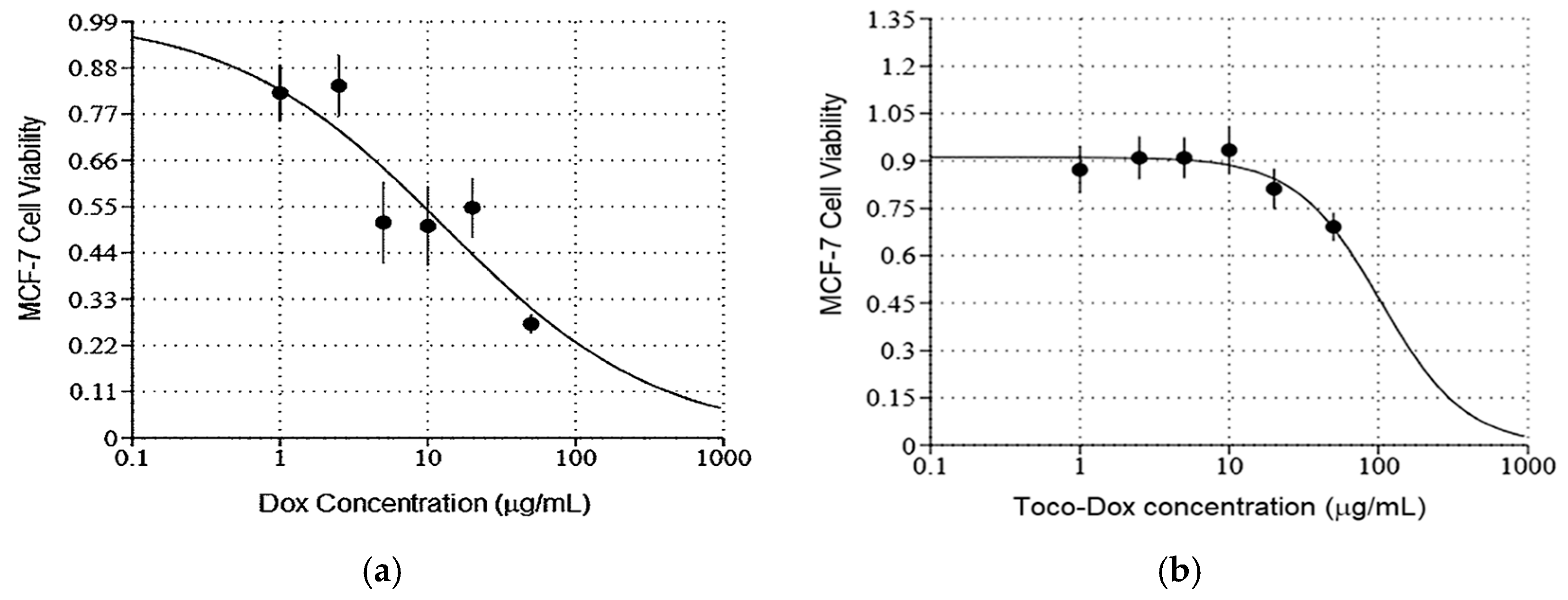 2.5. In Vitro Cytotoxicity of Toco–Dox Conjugates in MCF-7 Cells