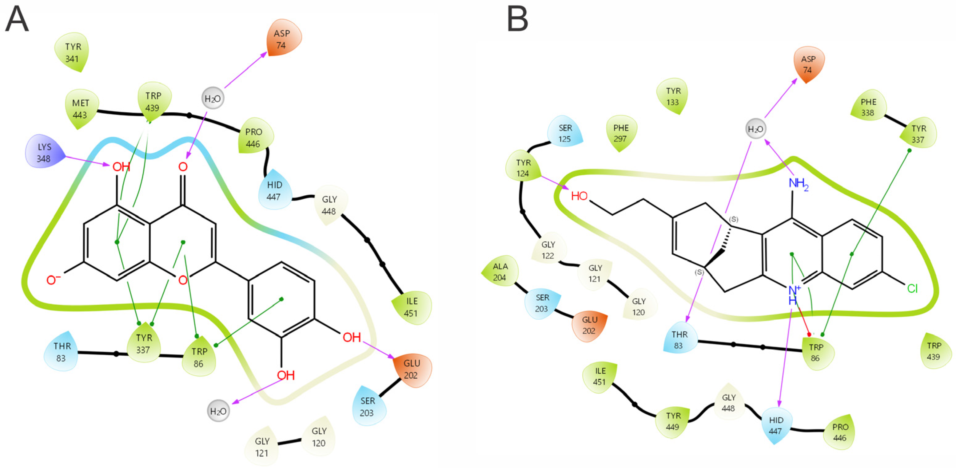 2.6. Compound Selection and Molecular Modeling