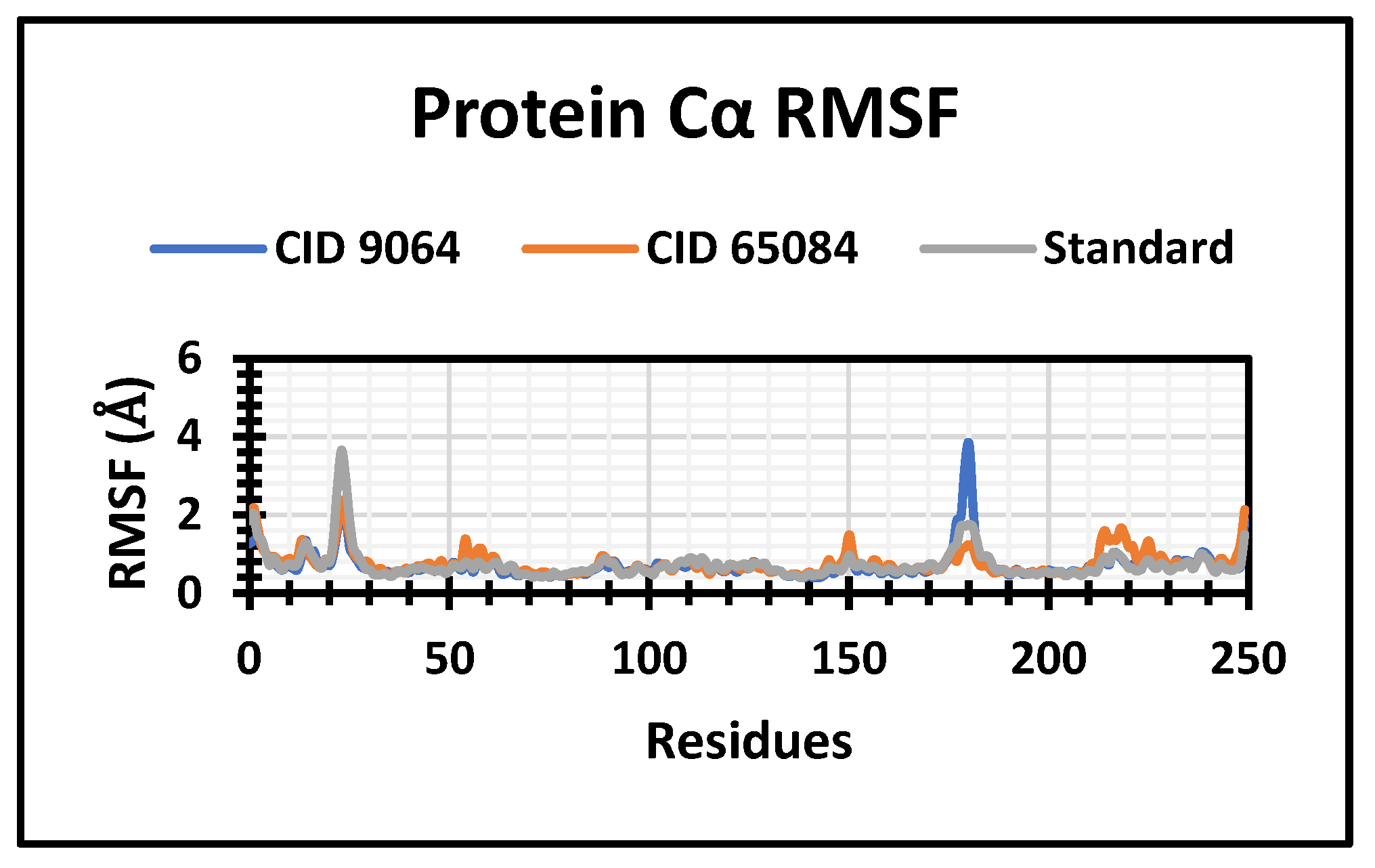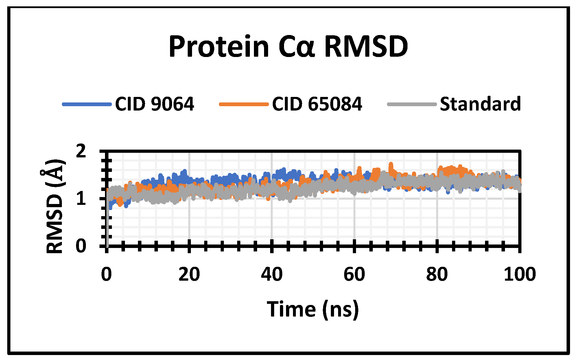| Compounds | Ligands (PubChem ID and Binding Energy) | Binding Affinity | RMSD/ub | RMSD/lb |