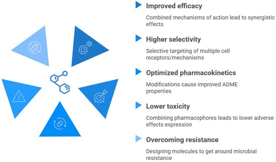 - Morais, T.S. Recent Advances in the Development of Hybrid Drugs. Pharmaceutics 2024, 16, 889. [Google Scholar] [CrossRef] [PubMed]