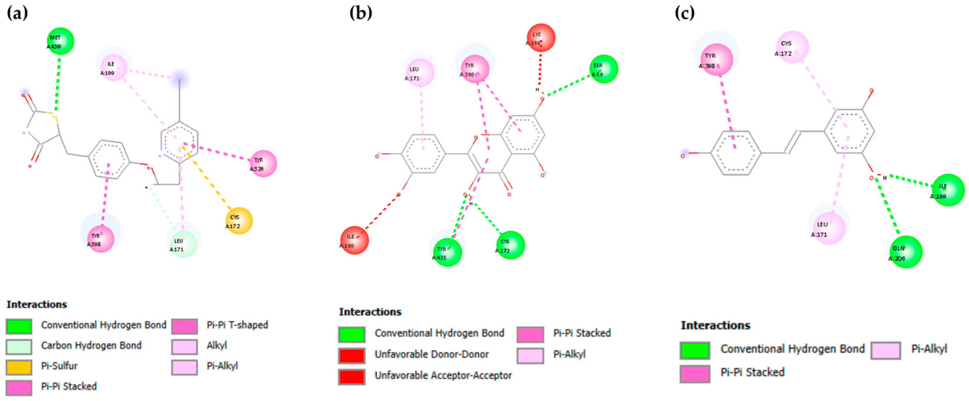 | Pioglitazone | antidiabetic | −8.2 | −10.2 | −6.8 |